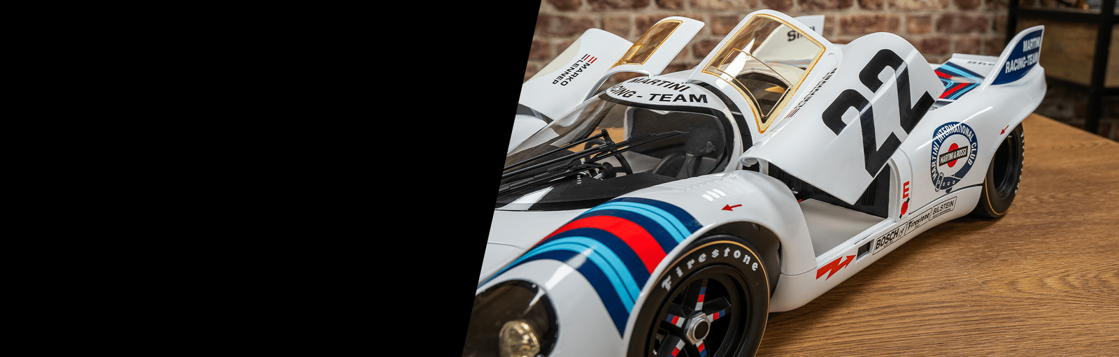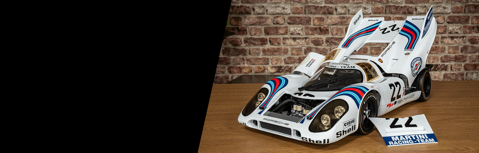 Experience automotive history with the Pocher Porsche 917KH – 1971 Le Mans Winner – MARTINI® Edition. A timeless symbol of speed, precision and racing heritage.